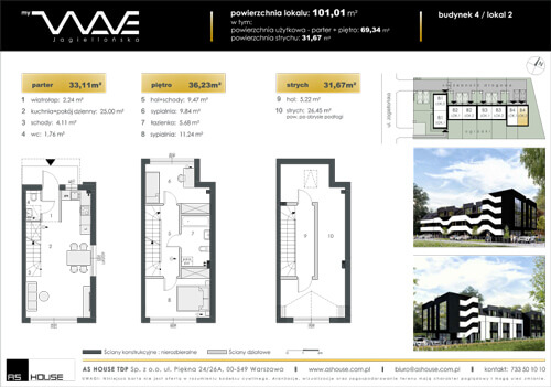 W tej wersji, każdy z poziomów segmentu, dzięki zamkniętej klatce schodowej, może spełniać rolę osobnego, niezależnego mini lokalu pod wynajem. Każdy z nich to ok. 25 - 30 m2 świetnie zaaranżowanego pomieszczenia wielofunkcyjnego, w skład którego wchodzi: kuchnia z pokojem dziennym, aneks sypialniany oraz łazienka. Aby uzyskać jak najwyższą funkcjonalność, każdy metr kwadratowy został tu wykorzystany w 100%.