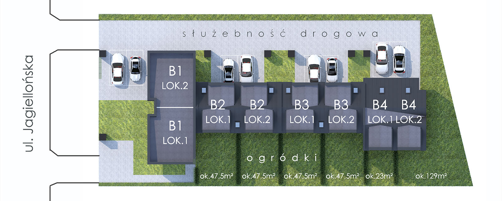 W inwestycji powstanie 4 domy jednorodzinne w zabudowie szeregowej, w których wyodrębnionych zostanie 8 segmentów o powierzchni od 96 do 121 m2. Każdy dom realizowany będzie na wydzielonej, odrębnej działce gruntu o powierzchni od ok. 305 m2 do 352 m2, dzięki czemu, mieszkańcy zyskają swobodę w zarządzaniu swoją nieruchomością, nie będą ponosić opłat za czynsz i utrzymanie terenu. Każdy będzie miał możliwość samodzielnego zadbania o swój kawałek przestrzeni.